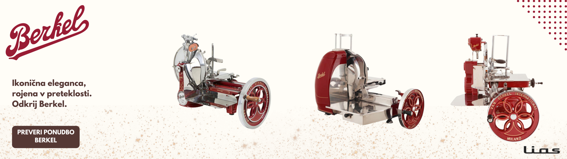 Berkel je priznano podjetje, ki izvira iz Rotterdama na Nizozemskem in je bilo ustanovljeno leta 1898. Ustanovitelj Wilhelmus Adrianus van Berkel je razvil prvi mehanski rezalnik, ki je revolucioniral način rezanja mesa in drugih živil. Podjetje je znano po svoji vrhunski kakovosti, inovativnem dizajnu ter prepoznavni rdeči barvi. Berkelovi izdelki združujejo profesionalno zmogljivost, eleganco in varnost ter so priljubljeni tako v gastronomiji kot pri domačih uporabnikih. S svojim bogatim zgodovinskim izročilom in stalnim tehnološkim razvojem je Berkel simbol tradicije in inovacij.